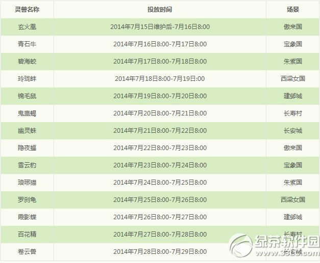 妙笔生花绘图志 活动时间: 2014年7月15日维护后至7月29日8:00期间全天 领取要求: 玩家等级≥30级,单人 活动介绍: 三界间人杰地灵,上古灵兽为灵气所感,于今夏降临三界。据说,有缘人可将其影象拓印于布帛之上,流传后世。少侠,你是不是那个有缘人呢? 活动期间,玩家(等级≥30级,单人)在位于长安城(230,120)的徐侠客处选择选项“我来领取待书写的图志”即可领取道具“待书写的图志”。 ![]() 领取图志 ![]() 待书写的图志 活动期间,上古灵兽将在如下场景与各位玩家相见: