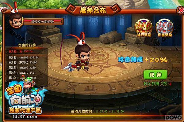 37《三国向前冲》魔神吕布世界BOSS奖励 1、每次战斗造成1000点伤害奖励10银币,向上整取;