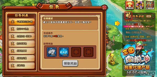 除了下本、打BOSS外,在37《三国向前冲》游戏中你还会有很多任务可以做哦,大多数任务的意义在于帮助大家逐渐熟悉游戏以及各项功能。当然最重要的还是任务奖励,尤其是前期,每一个奖励都很关键哦。