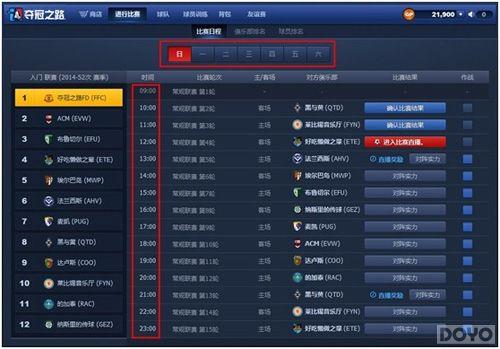 《夺冠之路》里的联赛每个赛季为期一周,每间隔一个小时进行一场比赛。进入游戏之后,直接点击确认比赛结果就可以查看已经结束的比赛,点击进入比赛直播可查看比赛直播。当然你也可以查看你的球队在俱乐部排名以及球队中球员排名。