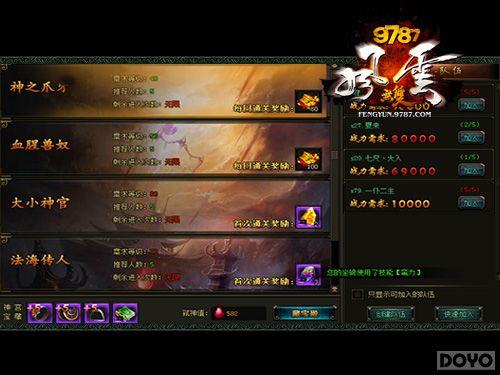 在9787《风云无双》神宫副本之中,玩家将组队击杀副本中的5个守关BOSS。这5个BOSS拥有不俗的防御能力和超强攻击能力。玩家想要将他们一一击杀就需要展现自身的实力。这些守关BOSS每一个身上都拥有许多富可敌国的宝藏。每当玩家击杀一个BOSS就能从BOSS身上获得大量的真气、经验丹以及主角和坐骑的紫色装备。当然,除了紫色装备以外,还会掉落大量的白色、绿色以及蓝色装备。这些装备可以用来进行熔炼,从而获得熔炼值,当熔炼值集满之时就能熔炼出一件适合玩家角色使用的紫色装备!