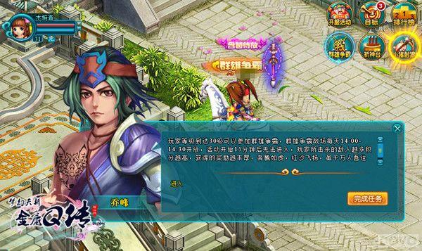 红沙飞扬,奔腾如虎,在wan《金庸Q传》的武侠世界中,群雄争霸将在每日14:00至14:30对外开放,所有人物到达30级的玩家,都可以加入其中挑战其他选手。而在这里需要注意的一点,那就是当活动开始15分钟后,争霸场将关闭大门不提供进入机会。所以想要参加争霸赛的各路英雄们,可要记得把握好时间哦!