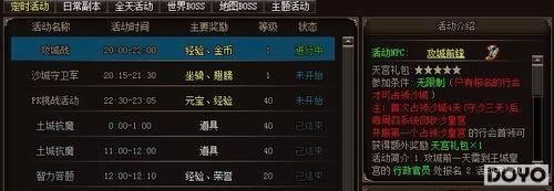 【战前准备】 沙漠之城,乃遗世独立之地,传说沙城里蕴藏着丰富的宝藏,还有上古神兽潜伏其中。要攻占这一处风水宝地,你需要召集行会的力量!“沙城争霸”每日20:00-22:00展开激战!想要参加沙城争夺战的行会必须提前一天到皇城“行政官员”处报名。