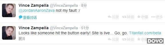 Respawn Entertainment工作室及项目负责人Vince Zampella早前发推称beta测试资格将于太平洋标准时下午六点开始申请,但申请程序其实已提前启动:
