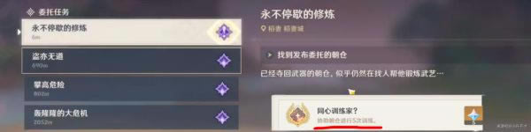 《原神》是由上海米哈游网络科技股份有限公司制作发行的一款开放世界冒险游戏,于2017年1月底立项,原初测试于2019年6月21日开启,再临测试于2020年3月19日开启,启程测试于2020年6月11日开启,PC版技术性开放测试于9月15日开启,公测于2020年9月28日开启。 原神中的同心训练家成就是隐藏成就之一,部分玩家可能不知道怎么达成,下面一起来看看原神同心训练家隐藏成就达成方法吧。 原神同心训练家隐藏成就达成方法 首先当我们接取到每日任务《必须精进的武艺》时与朝仓对话的两个选项神陨和巨龙各选一次。