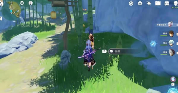 与旭东对话结束后,我们传送到轻策庄的竹林之中,找到香菱并对话,可以获得道具「手抄笔记」。