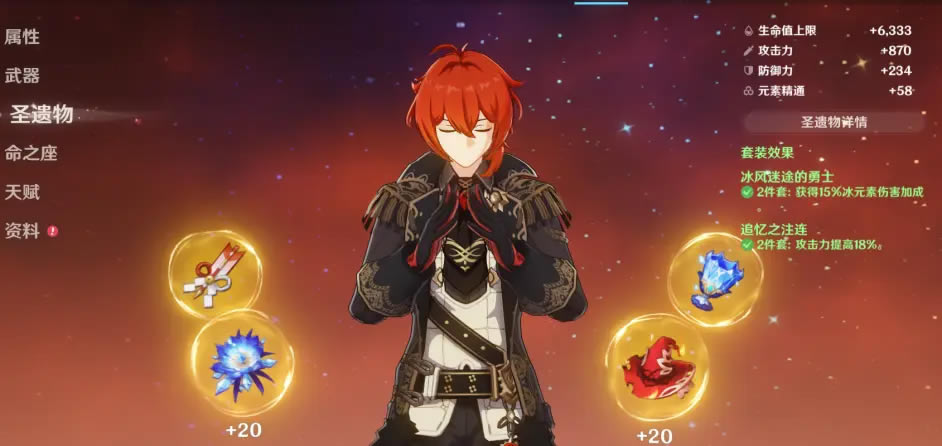 圣遗物方面,胡桃带行秋二千岩才12暴击率,所以确实有点猴,双火。