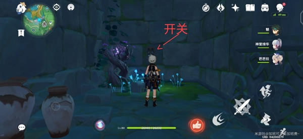 ③打开第2道门:进去后发现还有一道门。我们这时『往左拐』发现一个带雷种子的房间,旁边有一个『开关』打开它就能打开第2道门。开关位置如下图。
