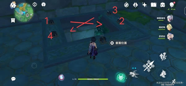 我们下去后打完怪会发现有一道带机关的门。这道门需要顺序才能打开它,具体顺序如下图。顺序按1 2 3 4 排列(交叉)