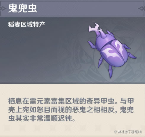 《原神》是由上海米哈游网络科技股份有限公司制作发行的一款开放世界冒险游戏,于2017年1月底立项,原初测试于2019年6月21日开启,再临测试于2020年3月19日开启,启程测试于2020年6月11日开启,PC版技术性开放测试于9月15日开启,公测于2020年9月28日开启。 原神中鬼兜虫是稻妻区域的特产之一,部分玩家可能不清楚在哪里可以采集,下面一起来看看原神鬼兜虫分布汇总吧。 原神鬼兜虫分布汇总 官方信息: