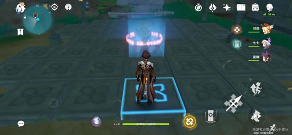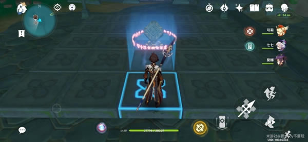右边的平台上有机关,连着两个屋子都是同类型机关,踩上那个方块之后会变成下图这样,从第一个格子开始走,不能回头,也不能踩相同的格子,一次性把所有格子都走完,最后一个走框起来的发光格子,就还挺简单的,我就不画怎么走了,要是不会的话…… 哦这里建议开行走一格一格走,别跑,容易踩歪
