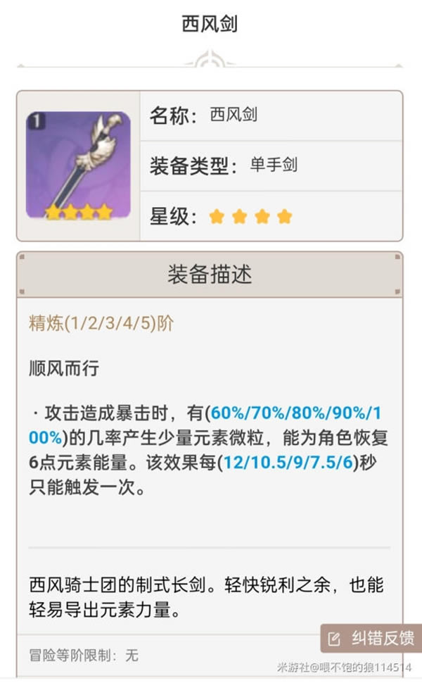 泛用性 高 适用角色 琴 班尼特 属性 基础攻击力454 元素充能效率61.3% 西风剑是典型的工具人剑,低白字带来高充能效率,整把剑都是为了充能服务。可以给班尼特带,给队友提供能量,不过白字较低,加攻击逊色于腐蚀。琴带也可以很好的在单风的情况下充能。但是西风剑因为被动的原因,需要角色携带暴击头保证暴击率,不然被动无法频繁触发 t2 暗巷闪光 笛剑 试做斩岩 宗室长剑暗巷闪光