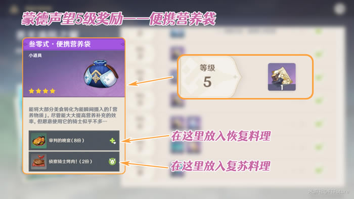 ▲小道具-便携营养袋 「魔偶剑鬼」的攻击兼具物理伤害、风元素伤害和冰元素伤害,各位旅行者可以根据自己情况选择合适的食物、药剂等。 以上就是逗游单机频道带来的原神魔偶剑鬼挑战道具推荐,更多精彩内容尽请关注逗游单机攻略频道>>> 本次分享游戏《原神》攻略。 |