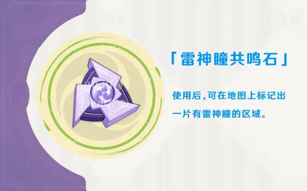 《原神》是由上海米哈游网络科技股份有限公司制作发行的一款开放世界冒险游戏,于2017年1月底立项,原初测试于2019年6月21日开启,再临测试于2020年3月19日开启,启程测试于2020年6月11日开启,PC版技术性开放测试于9月15日开启,公测于2020年9月28日开启。 原神稻妻将在后续版本开放,届时也会增加多个新的道具,下面给大家介绍一下这些道具的效果,希望可以帮助到各位玩家。 原神稻妻新增道具效果介绍 1.雷神瞳共鸣石