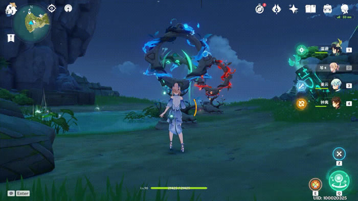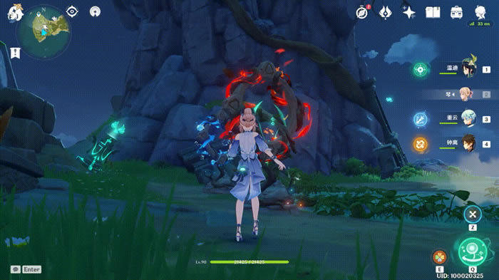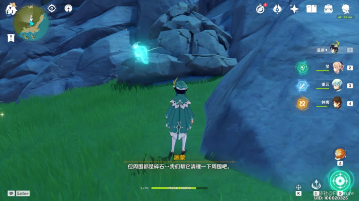 ▲空中出现的传送通道 清理周围 通过传送通道的传送,我们惊讶地发现竟然回到了蒙德境内。在继续跟随仙灵前进的路上,仙灵又驻足在了一堆碎石面前,看来这碎石后就是仙灵台座了,我们先把碎石清理掉吧。