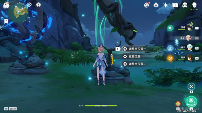 ▲靠近仙灵以触发任务 跟随仙灵 触发任务后,仙灵果然同以往一般,开始带着我们移动。一路跟随仙灵来到山下,仙灵却停在一个石柱旁不动了。 这种情况派蒙都已经学会抢答了,没错,我们遇到的一定就是经典的解谜环节,想来周围一定有什么石头堆啦、石碑啦、元素方碑之类的东西在等着我们探索。