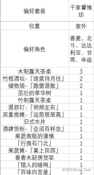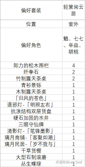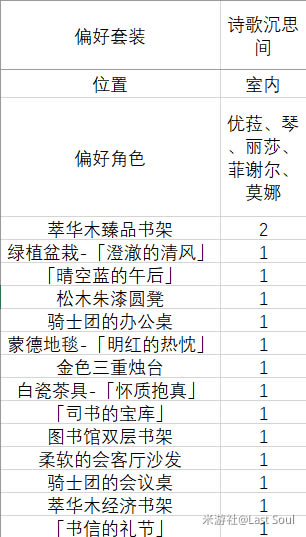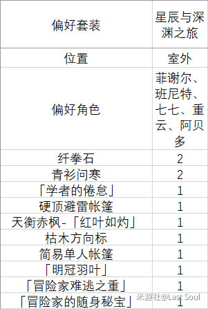 《原神》是由上海米哈游网络科技股份有限公司制作发行的一款开放世界冒险游戏,于2017年1月底立项,原初测试于2019年6月21日开启,再临测试于2020年3月19日开启,启程测试于2020年6月11日开启,PC版技术性开放测试于9月15日开启,公测于2020年9月28日开启。 原神1.6是很多玩家关注的重点,本次就为大家带来了原神1.6家园偏好套装汇总,也是室内外偏好套装角色一览,非常全面的内容,想了解1.6家园偏好套装的朋友可以参考,希望能帮到大家。 1.6家园偏好套装汇总1.6版本已经更新了。如果是之前关注我的大家会知道我之前一直在做套装内多部件的数量统计。今天更新以后,家园新增了偏好套装,在家园中摆设特定角色和其偏好套装会取得额外奖励。 然而正如我之前所提到的:很多套装中的部件不止一个,不同套装中也可能存在需要重复部件的情况。同时,套装中需要的单件装饰品如果单独摆放下去,在套装中也是不会显示你已经拥有这个装饰品的数量。这就给套装强迫症们带来许多麻烦,绿色蓝色的装饰品少了凑不齐套装,多了又浪费,到底造多少合适呢? 显然这些问题同样存在于偏好套装中。本着方便大家的思路,我今天加班对偏好套装中的多部件数量进行了统计,希望大家看在我这么辛苦的份上给个赞支持一下。 利用方法: 在游戏内打开背包,切换至摆设一栏,就能够看到自己拥有的所有装饰品数量,自行进行比对即可。