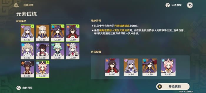 元素试炼一个是用元素反应让机关瘫痪四次,可以用元素攻击把机关瘫痪,雷用冰、冰用火、火用水,互相克制的属性,瘫痪机关更快,水属性这个的话冰和火速度也还可以,然后是需要触发五次元素反应,可以在队伍里面带上四个属性各不相同的角色,比较好完成这个任务 并且这个关卡所有角色的元素精通都有提升300,且发生元素反应的时候,会在敌人的身上造成冲击波,可以主要用元素反应造成伤害