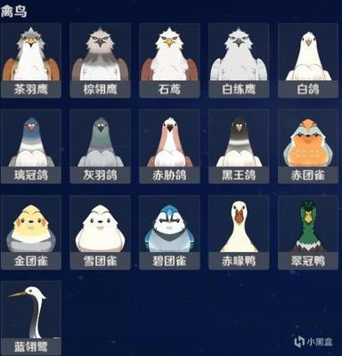 石鸢:①孤云阁山顶②爱心岛(从无相之岩旁边风场飞过去) 白练鹰:庆云顶传送点 璃冠鸽:漓月港思思旁边有璃冠哥灰羽哥