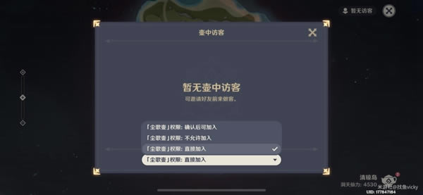 4,选择权限:直接加入。这样就可以了。你的好友不需要你点击同意,甚至不需要你在线,就可以随时随地进入你的洞天为你助力。
