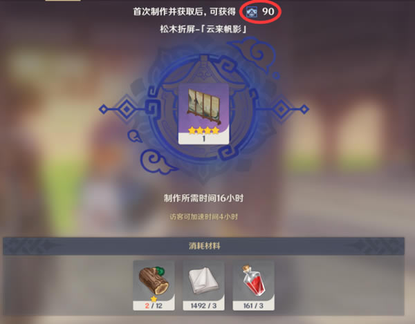 四、制作 对于造东西,各位旅行者肯定轻车熟路了,具体的流程就不在这里多说了。我们现在主要来看看在这只小团雀这里制作家具需要用到的材料吧