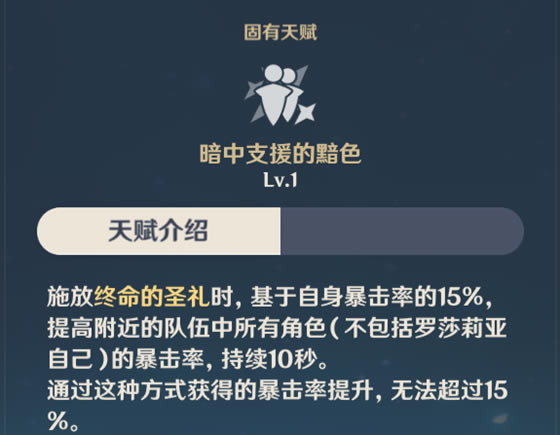 固有天赋2:能提升其他角色的暴击率,EQ的话这个基于自身暴击率能吃到固有天赋1的加成。