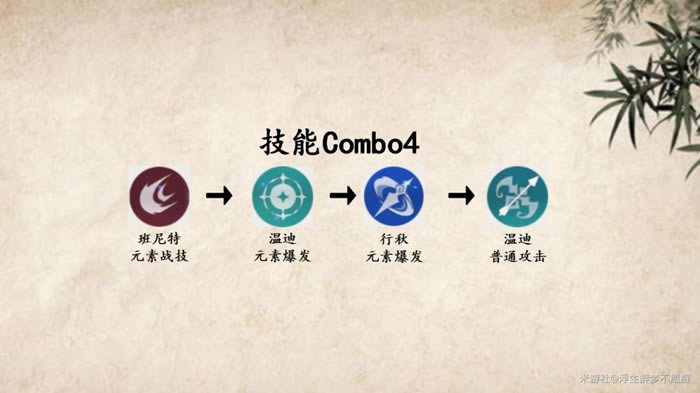 技能Combo1-3中的元素战技和普通攻击推荐连招为AEAEAE或AEAAAEAAAE。前者所需时间少,后者伤害总量多,且能使Combo1无缝循环(祭礼剑触发的前提下,未触发可切换Combo2循环)。