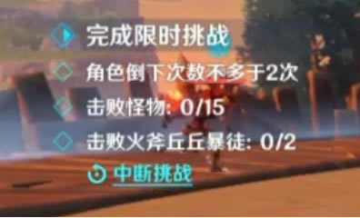 在左侧会及时显示旅行者们挑战中完成挑战的进度,同时阔以随时中断挑战。