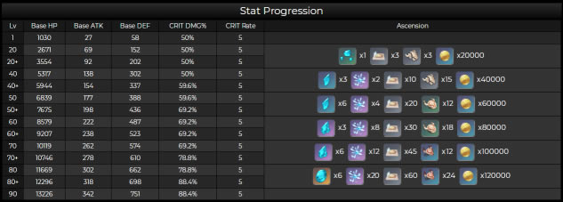 90级基础属性: 攻击白值342 暴伤88.4% 突破是加暴伤的