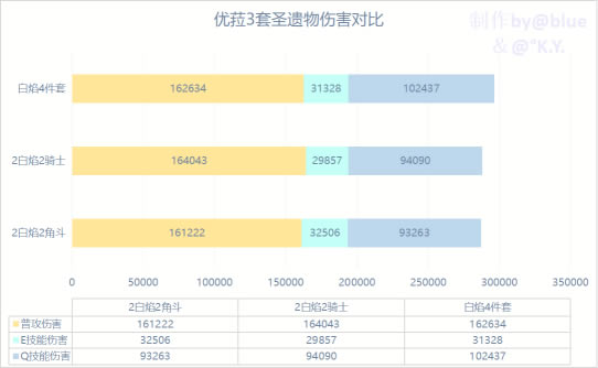 于是得到最佳加点思路:全技能7级开始,先把普攻点满,再把Q点满,最后点E技能 [面板属性] 先不看圣遗物套装效果。 动态分析我还没找到比较合适的计算方法,所以就静态弄个模板了。 如果你有好的动态分析算法,能够把0基础到大毕业整个养成过程的面板变化呈现出来的话,欢迎提出! 条件: 1.采用90级人物,90级乐团大剑 2.主词条:攻击沙、物伤杯、暴率头 3.副词条采取“小毕业”对应质量。培养周期约[一个月] 副词条提供百分比攻击计20%,然后剩下60个暴击权重自动适应1:2配比 4.按一命计算,我认为这种情况更广泛 5.乐团剑被动算触发状态 6.计入双冰共鸣15%暴率 7.技能等级10/7/8 面板: (再强调一下,到此为止还没有计入圣遗物套装效果) 1.攻击力白值1083 2.攻击百分比加成(已折算羽毛):102.9% (目前实际攻击力为2197) 3.暴击/暴伤:61.1/158.4 4.物伤107% 5.技能等级10/7/8 [圣遗物套装对比] ? 点击显示隐藏的内容 ... 将圣遗物套装的数据加入上文得出的面板,输出手法,比较这个流程的伤害期望。 》2白焰2角斗: E=1083*(1+102.9%+18%)*(219.6%*3+368.4%+144%*2+328.96%+(602.7%+110.25%*8+9.3723*3)*(1+107%+25%))*(1+61.1%*158.4%)*1.05*0.5 》2白焰2骑士: E=1083*(1+102.9%)*(219.6%*3+368.4%+144%*2+328.96%+(602.7%+110.25%*8+9.3723*3)*(1+107%+50%))*(1+61.1%*158.4%)*1.05*0.5 》白焰4件套: E=1083*(1+102.9%)*(219.6%)*(1+61.1%*158.4%)*1.05*0.5 +1083*(1+102.9%+6%)*(219.6%+(9.3723)*(1+107%+25%))*(1+61.1%*158.4%)*1.05*0.5 +1083*(1+102.9%+12%)*(368.4%+144%*2+(9.3723)*(1+107%+25%))*(1+61.1%*158.4%)*1.05*0.5 +1083*(1+102.9%+18%)*(219.6%+328.96%+(602.7%+110.25%*8+9.3723)*(1+107%+50%))*(1+61.1%*158.4%)*1.05*0.5 得到: