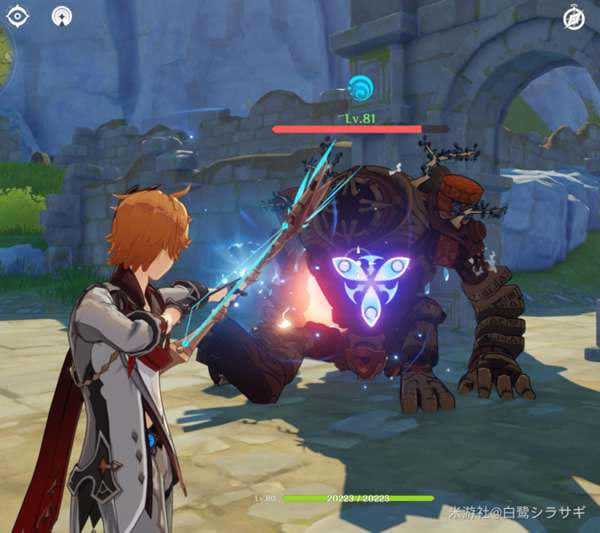 重击会给敌方单位施加如图模样的断流状态且为目标附着水元素。 当你再次蓄力攻击目标时会发生一次范围性水元素伤害。如下图所示。