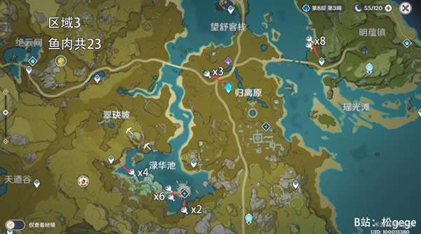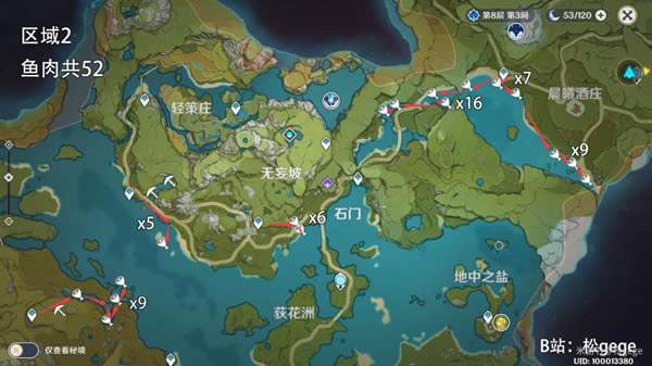 《原神》是由上海米哈游网络科技股份有限公司制作发行的一款开放世界冒险游戏,于2017年1月底立项,原初测试于2019年6月21日开启,再临测试于2020年3月19日开启,启程测试于2020年6月11日开启,PC版技术性开放测试于9月15日开启,公测于2020年9月28日开启。 原神中螃蟹和鱼肉都是制作buff食物的必要食材,那么在哪里可以快速的采集这些特产呢?下面一起来看看原神螃蟹及鱼肉采集位置汇总吧。 原神螃蟹及鱼肉采集位置汇总 鱼肉4个区域共144 用途:食材烹饪 列如:松鼠鱼、水煮黑背鲈、中原杂碎、来来菜等… 区域1 鱼肉共39