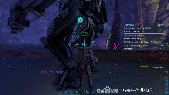 可以看到,竞技场中间有个箱子里面装着泰克机甲,只有机甲的伤害才能成为击败老罗节点及本体的关键!