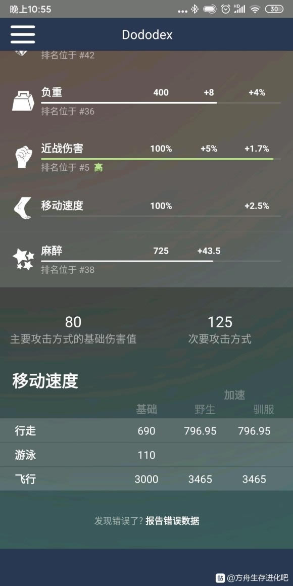 《方舟:生存进化》是一款由独立工作室Wildcard所制作的生存类沙盒动作角色扮演游戏。游戏于2017年8月29日登陆PC平台,随后于2017年11月7日上线XboxOne平台。 方舟生存进化水晶岛dlc中有非常丰富的飞龙种,很多玩家对这些飞龙种的属性数据不是很了解,下面一起来看看水晶岛dlc全飞龙种属性数据吧。 方舟生存进化水晶岛dlc全飞龙种属性数据一览 元素飞龙 首先是元素飞龙的数据,因为元素飞龙有友伤且无减免,测试对象是驯服的一级雷龙,也同样会用野生龙对照伤害,因为1级元素龙初试伤害是88.2,不足百分百,所以升了8级,把伤害升到了100.2 下面是元素龙和水晶龙的基础属性图,然而奇葩的是,dododex上元素飞龙的基础生命是1725,而我刷出来的一级龙生命值只有675