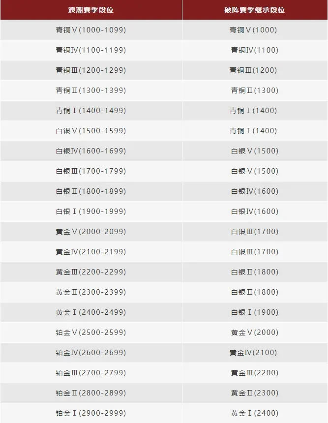 2、玩家的天人之战单排、三排段位积分不会继承到新赛季。 3、玩家的击败积分、生存积分、英雄积分都将部分继承到新赛季,积分越低继承比例越高;