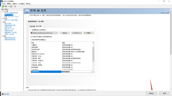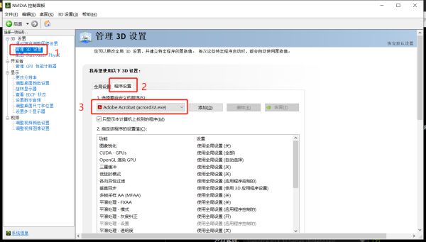 2、请选择左侧管理3D设置,点击右侧程序设置。