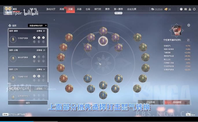 让大招来的速度更快;右侧选择5个精力上限和1个初始怒气,精力上限可以让战斗的翻滚使用次数更多,而一个初始怒气也可以让开场第一个大招来的更快,也能更早的建立优势。上面部分优先选择打击怒气转换