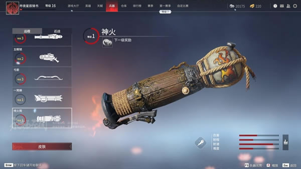 鸟铳特性:左键直接狙击,射速高伤害较低。(适合在中距离或远距离补伤害)右键精准瞄准射速低伤害高。由于鸟铳的伤害比较高,配合破甲魂玉,可以说是中远距离作战中蓄力近战武器的克星。 五眼铳