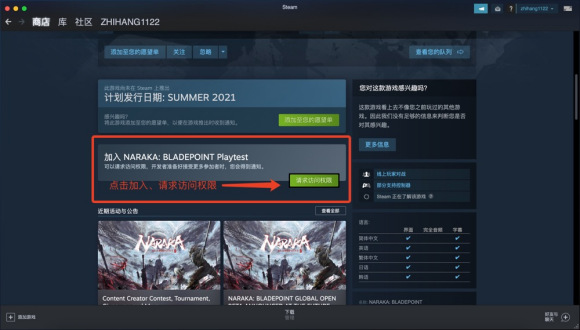 《永劫无间》是由网易旗下 24 Entertainment工作室 开发的一款多人动作竞技游戏,于2021年7月8日开启不删档测试,《永劫无间》Steam全球公测于2021年8月12日10:00正式开服。同年12月9日,《永劫无间》正式登陆EPIC商城。2022年6月23日《永劫无间》正式登陆Xbox主机,首发加入XGP。 永劫无间即将在4月24日在steam平台开启免费开放测试,如何申请测试资格?下面给大家分享一个永劫无间4月24日steam开放测试申请方法 永劫无间4月24日steam开放测试申请方法国产动作游戏《永劫无间》国服先行测试体验已结束,官方宣布游戏Steam测试将于北京时间24日2:30(格林威治时间4月23日18时)开启,而且后续测试均不需要激活码。 本次steam测试均取消激活码限制,也就是说现在想要参与测试的玩家,只需要在steam上申请即可。 原定于只面向海外的steam测试,本次也对国内玩家开放。 申请测试资格吧: 1、进入steam,搜索NARAKA: BLADEPOINT,如图选择游戏。
