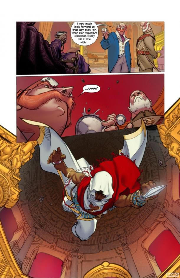 “《刺客信条:婆罗门》介绍了一名全新刺客- Arbaaz Mir -一生都投入在反抗外来入侵者的战斗之中。这部漫画小说属于《刺客信条》正统世界,揭露了全新的信息,与未来作品的故事线有着密切的联系。” 该漫画将在今秋正式发售。 部分预览画面: