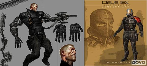 在大多数游戏中,军团的服装是通用的,都是一些基于现实世界的简单设计。他们不会留下太多空间去创新。然而,在《杀出重围:人类革命》中有一些很酷的设定,创新设计的战术服装和军事组织完美匹配。他们不仅看起来很酷,实际上也有功能性构造,就像是一些真正的佣兵会穿的衣服。这件衣服遵循游戏多边形的设计思路,有许多功能特性,比如扣子和口袋,其中都夹杂着基本的装甲设计。