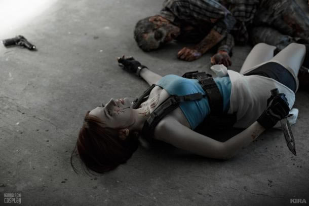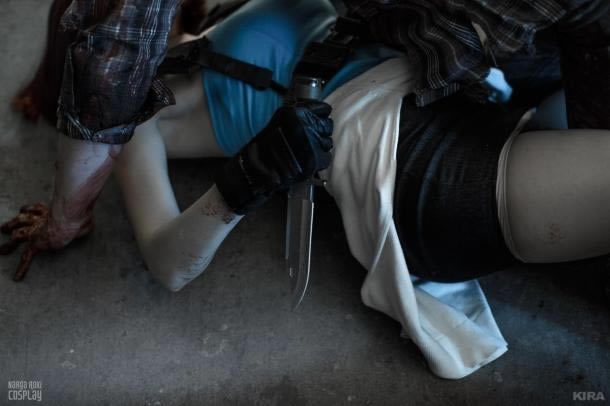被丧尸扑到的吉尔一个反手就是匕首入头,连血溅在身上都那么艺术,为COSER小姐姐添了一分别样的美丽。 Jill Valentine:Narga Zombies:Lady Neba, Misha, Aoki. photo:KIRA