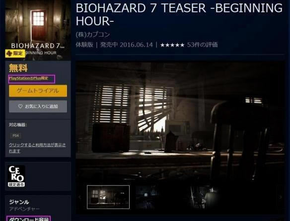 更让人激动的消息则是,这部《生化危机7(Resident Evil 7)》今天就已经在PS商店发布了了一个试玩Demo,PS Plus用户都可免费下载试玩,这个试玩版大小2.7G,同时在PS商店还有三张游戏截图,阴暗的风格颇有《寂静岭》的风格。(截图为日服商店,港服的试玩版被下架,暂不知道原因) 《生化危机7》截图: