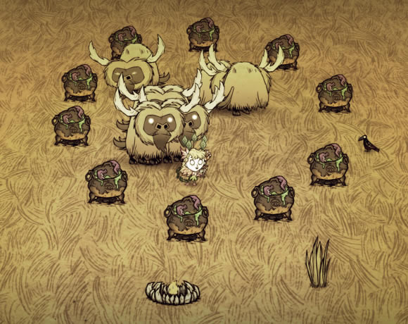 第二个推荐的是沼泽建家 沼泽对于萌新来说无疑是危险的存在,大量的触手、蜘蛛、鱼人即便是有一定战斗经验的老手也要小心应对,然而我前期喜欢的事情就是去沼泽不劳而获了,前面提到的三个沼泽主要生物完全就是互相对立的关系,黄昏的时候进一次沼泽保证你吃的都装不下。如何在沼泽生存后面在细说先盘点好处以及坏处 首先好处前面提到过了可以不劳而获获得大量食物,还有就是沼泽第一无二的有点就是芦苇,前期肯定是要去弄上八个好做鸟笼的,还有一个恐怕大家很难发现的优点那就是鱼人会帮你刷蚊子,血袋完全多到不想捡。 缺点则是很危险,一个不小心就无了,晚上的蚊子也和现实世界中一样烦(选择小鱼人的话沼泽就是自己后花园)想要利用沼泽生物防狗也是有难度,因为芦苇、蜘蛛巢、鱼人房都非常怕火,如果来了火狗或者夏天自燃了非常的麻烦。 评分:实用度★★★ 美观度★★安全度★★(选择小鱼人可以直接给到满星) 综上所述如果你不是小鱼人没必要头铁直接进沼泽里面建家,完全可以在沼泽的入口兼顾其他资源,黄昏的时候进去收获一波,但是进去的时候记得戴一个头盔。武器食物全部零元购。