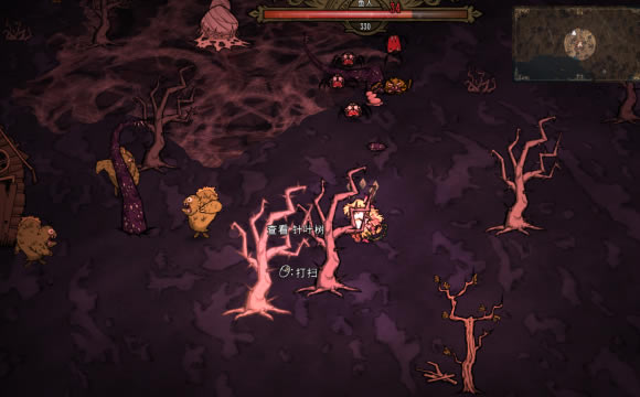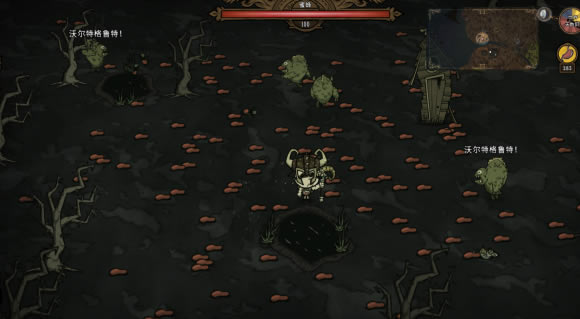 第三个是猪王建家 这算是萌新第二喜欢的建家位置了大家都很熟悉所以就简单说一下 优点有大量浆果,有桦树可以做回血料理,天然的猪人村庄,也是赃物袋和无眼鹿的刷新地点之一格罗姆也在这里,格罗姆旁边还必然有花前期蜂箱可以放这里,还有不可替代的猪王可以给你金子吃不完的食物就全塞给猪王吧。 缺点月圆会有有疯猪(这完全不算缺点弄一圈围墙卡位完美解决其他零散的猪人房拆掉就好,顺带一提选了温蒂的话月圆又是一波大丰收,大量大肉猪皮拿到手软。如果是其他角色可以一个一个疯猪打,切记打完一个捡完战利品在捡下一个。)还有就是小猫和鼹鼠真的烦,当心进你家零元购。出现概率更高的桦树精很难说是优点还是缺点,叫上一帮猪人帮着砍也很快就能砍完,但是频繁出没就很烦,可以迅速移植松树代替木头产出。猪王的地理位置也相对较偏去哪里都很远不过好在这个区域固定会有一个洞穴入口和一个虫洞算是勉强弥补。 安全性方面你都做好猪人卡位装置了你唯一要注意的就是防火了。 评分:实用度★★★★ 美观度★★★安全度★★★★(选择小鱼人小恶魔的不推荐在这里建家) 综上所述猪王区域虽然有天然浆果但是没有草和小木枝所以要尽快移植,固定会有洞穴和虫洞会勉强弥补地理位置的偏僻