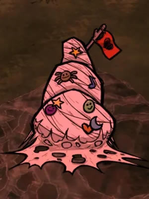 治疗黏团 制作材料:2蜂蜜+2灰烬+2蜘蛛网 耐久:一次性消耗品 作用:为2*2格地皮的圆形范围内的所有蜘蛛回复80点血量【隐藏效果,在你身上使用时候会给你回8点血】 评价:制作简单,材料易得,你的小弟比你强系列,然而由于有护士蜘蛛存在感觉几乎用不到。。。 安抚蜘蛛用品:蛛巢装饰工具