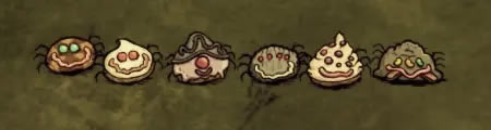 XX变身涂鸦 从左到右分别是:“战士变身涂鸦【黄蜘蛛】”;“悬空者变身涂鸦【白蜘蛛】”;“洞穴变身涂鸦【厚壳蜘蛛】”;“喷射者变身涂鸦【喷射蜘蛛】”;“粉碎者变身涂鸦【月岛蜘蛛】”;“护士变身涂鸦”。 所需材料: 战士变身涂鸦:2怪物肉,1蜘蛛网,1猪皮 悬空者变身涂鸦:1怪物肉,1蜘蛛网,1兔毛 洞穴变身涂鸦:1怪物肉,2蜘蛛网,2石砖 喷射者变身涂鸦:1怪物肉,2蜘蛛网,4硝石 粉碎者变身涂鸦:2怪物肉,3蜘蛛网,2月玻璃 护士变身涂鸦:2怪物肉,2蜘蛛网,2蜂蜜 注意,必须要成功贿赂过蜘蛛才能制作相应的变身涂鸦 评价:无论如何地穴你还是要下的,放弃从地上就能弄到喷射蜘蛛的想法吧,虽然韦伯下地穴就像回家了一样 接下来,新蜘蛛!护士蜘蛛!