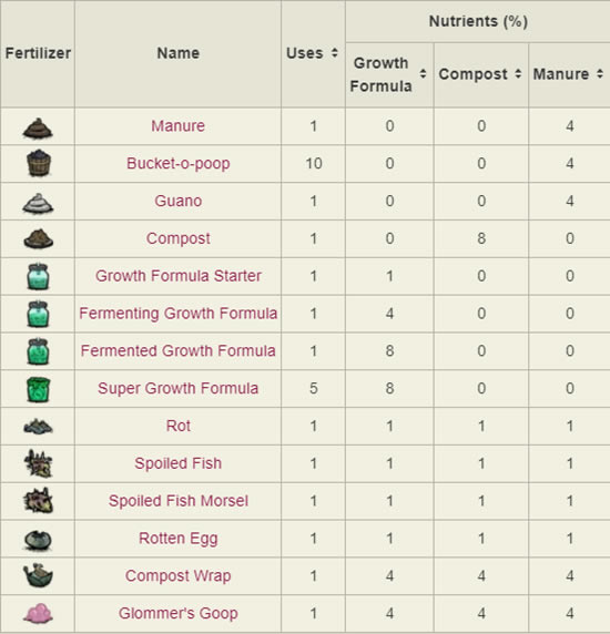 以上就是逗游单机频道带来的饥荒联机版耕种营养元素攻略与肥料详解,更多精彩内容尽请关注逗游单机攻略频道>>> 本次分享游戏《饥荒联机版》攻略。 |