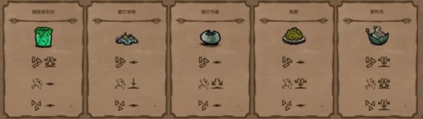 《饥荒:联机版》是一款由Klei Entertainment发行的冒险生存类游戏。2022年3月,开发商Klei宣布,《饥荒:联机版》4月12日登陆Switch平台。 饥荒联机版种瓜得瓜中对农场进行了改动,其中新增的几种肥料可能部分玩家不了解其效果,下面一起来看看饥荒联机版种瓜得瓜全肥料效果详解吧。 饥荒联机版种瓜得瓜全肥料效果详解 这些就是全部肥料,有箭头就代表会在地里加入某种肥料,箭头越多,肥力越强。道理很简单,植物缺什么肥了,补充对应肥料就行。但是这些肥料,植物人都能对自己使用。