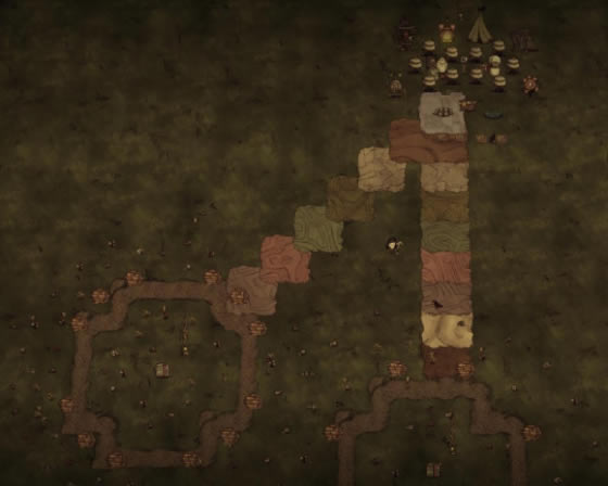 在联机版有手杖且无延迟的情况下,其实更推荐这种边长为5块地皮的方框的建法。
